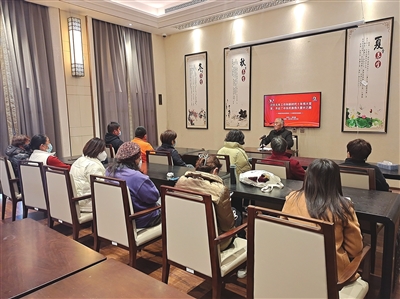 在书院镇社区事务受理中心会议室,宣讲团成员周琴华正声情并茂地宣讲着党的二十大精神,台下的“听众”认真做着笔记。整场宣讲方式“新”、内容“实”、氛围“活”,既深入宣讲党的理论和路线方针政策,又通过适时的互动交流让严肃的理论宣讲变得轻松活泼。
