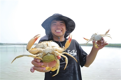 “作为靠海而生的人,蝤蛑是我们重要的家乡味。”王蒙和南存丰介绍,近年来,越来越多外出的年轻人回到翁垟从事蝤蛑养殖,越来越多养殖户合力守护“翁垟蝤蛑”品牌,并在网络助力下推广鲜美家乡味。