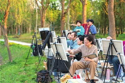 10月末的一个周日,崇明区庙镇镇东村的生态林迎来了20多位到此写生的老人。这些老人中,绝大多数是上海人,但他们并不了解,这片充满鸟鸣野趣的林地,是上海15个大型生态片林之一。偶有风吹树叶沙沙作响,跟着油画老师临摹风景,不知不觉,就过了4个多小时。