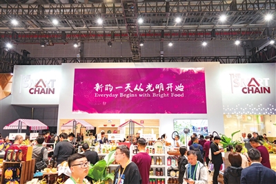本届进博会,光明食品集团参展面积共3655平米,超过400个商品品类参展。“THE SMART CHAIN全球食品集成分销平台”连续6年蝉联食品展区最大单体展台,今年更是成为整个进博展馆内的最大单体展台。