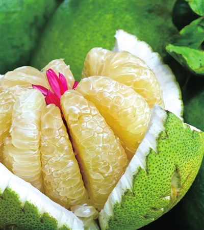 此外,同等大小的柚子,手感重说明皮薄肉多。表皮光滑的柚子更新鲜,因为如果失水,柚子皮就会变皱。如果柚子的皮不光滑,表面疙疙瘩瘩,说明柚子皮里的油腺比较发达,也就是说果实花了很多资源在皮的发育上,果肉的味道就比较寡淡。所以,想要挑到好吃又营养的柚子,就选手感沉、皮光滑的。