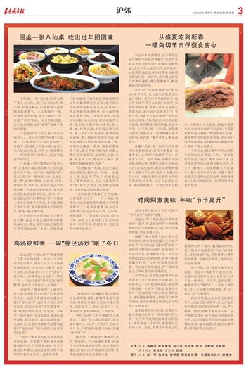 庄行的“羊肉烧酒食俗”拥有600多年历史,是上海市非物质文化遗产项目。庄行伏羊节盛名在外,这让作为伏羊节分会场的“田园里”也深得游客喜爱,夏季三伏天总是座无虚席不说,如今虽已是寒冬时节,节假日里,也有不少游客前来一尝庄行羊肉的美味。“如果说伏天吃羊肉配上烧酒,痛快酣畅、排汗排毒,那么冬天吃一口羊肉、喝一口羊汤,就是暖心暖胃、御寒滋补。美食的魅力是不分时间、地点的。”餐厅负责人顾永豪表示。