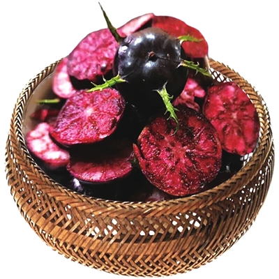紫黑色的红果参味道不重,酸酸甜甜的,不苦不涩,口感沙脆。公平地说,在近些年靠颜值出道的新奇水果里,它的味道算是还可以的。美中不足的地方是,红果参有一股比较重的青草味,有人接受不了,觉得不好吃,但也有不少人喜欢这种味道。如果你爱吃生绿叶菜,那建议鼓起勇气去试一试,不一定真的会喜欢上,但至少可以满足一下自己的好奇心。