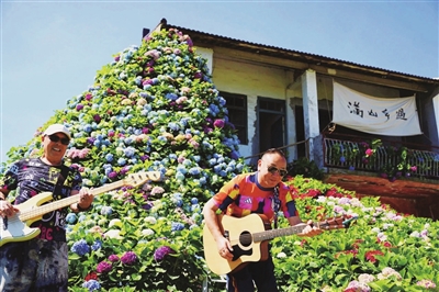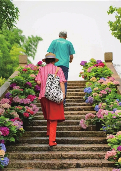 初夏,沪郊绣球花如约绽放,玫红、粉红、深蓝、淡紫、浅绿……片片花海如同打翻了的调色盘,缤纷浪漫,不失为市民游客“偷闲”的好去处。