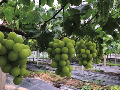 目前,果园南侧60亩智能化连栋大棚已实现生产,棚内栽培的“阳光13”“莱莉香”“天朗”“七星女皇”“晨香”“黑色皇冠”“弗蕾无核”等新品种葡萄将进入盛期。实践证明,该项目可提高土地利用率35%,温湿度统一调控后进一步提升了葡萄品质,同时还节省了劳动成本,成为上海市郊葡萄高质量发展的标杆。