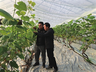 他将“葡萄经”分享到长三角,创建葡萄技术示范区。2019年,卢玉金走出上海面向长三角,率先与浙江省平湖市银丰葡萄园创建“施泉+银丰”葡萄示范区,为该示范区落实了科技治园的“良方”。2021年,“银丰”60亩葡萄销售额达到200多万元,比原来翻两番。邻近的浙江新仓等8个合作社450多亩葡萄都加入了“施泉”朋友圈。