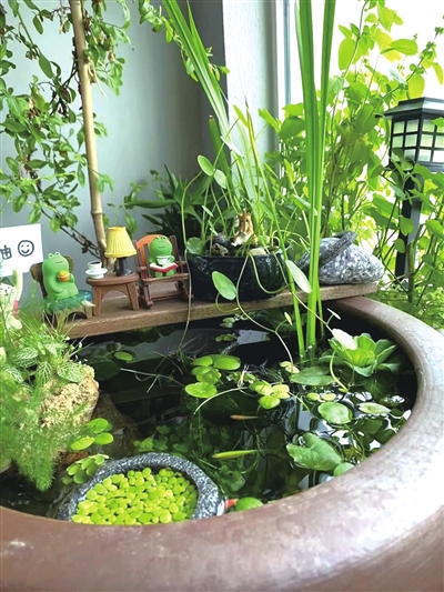 “生态缸就适合懒人,是忙碌生活中的一抹阳光。”一个养鱼博主很喜欢用生态缸养鱼治愈着繁重的工作压力,“这种养鱼方法特别适合我这样的懒人。喜欢花花草草,很早就被‘种草’了,2022年8月‘拔草’,本来是养一缸水草,小鱼只是点缀,后来买鱼上瘾,草缸作为点缀,阳台有植物、有鱼、有猫,真的很解压,因为平时工作压力大,这些东西光看着就很治愈,喜欢在阳台露营,特别是夏天的夜晚,鱼缸放上水泵,灯光点缀,潺潺水流,撸猫弄鱼,很解压。”