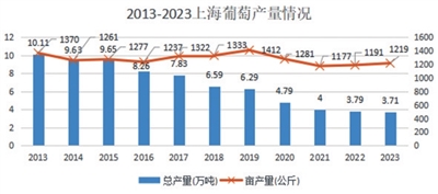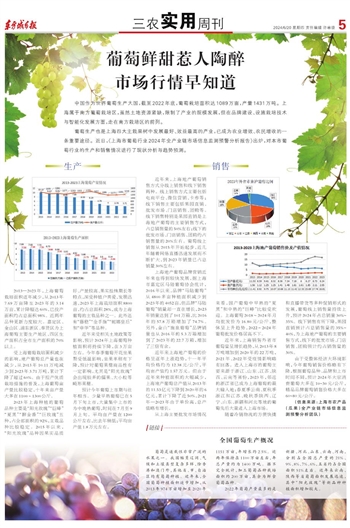 葡萄生产也是上海四大主栽果树中发展最好、效益最高的产业,已成为农业增效、农民增收的一条重要途径。近日,《上海市葡萄行业2024年全产业链市场信息监测预警分析报告》出炉,对本市葡萄行业的生产和销售情况进行了现状分析与趋势预测。