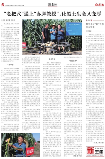 一位是埋头田间,跟科技要效益的老农民,一位是醉心黑土,把论文写在大地上的沈阳农业大学教授———志趣相投的赵玉国和齐华,用十五年光阴,一同琢磨出适合辽北地区的保护性耕作新模式,让黑土地生金又厚实。