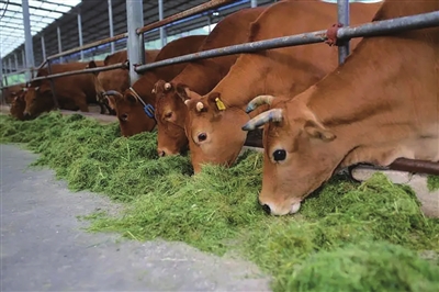 在育肥期,当肉牛日粮中含30%的青秸秆时,对生产无影响,如秸秆含量超过45%时,生产性能降低,屠宰期延长,屠宰成绩降低。
