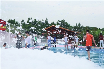 在顾村公园的泼水嘉年华,玩水的场景充满了无尽的欢乐与激情。市民们在这里可以体验到充满傣族风情的泼水嘉年华,相互泼水,传递美好与希望,忘却烦恼与疲惫。特别是专为小朋友打造的泡泡秀,如同打开了梦幻的大门,孩子们可以在泡泡的海洋里嬉戏玩耍,尽情享受童年的快乐。据悉,这场泼水嘉年华活动将持续至8月31日,为市民们带来整个夏天的清凉。