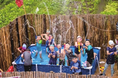 再在练塘镇东厍村的青塘小院里,约上一群小伙伴,拿着水枪,穿着拖鞋,相约在院子里,准备开始一场水枪大战。水枪装满水,一声令下,水花四溅,大家你追我赶,笑声不断,熟悉的童年回忆就这样被快速寻回。