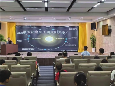 接着,孙正凡从节气的天文来源,节气的作用,节气和星座、农历、现代科学三个维度,向假日学校的40多名中小学生代表娓娓道来,述说着二十四节气的前世今生,以及它的独特魅力和在现实生活中的积极作用与影响。