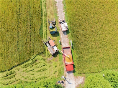 8月28日清晨,位于奉贤区庄行镇新叶村的上海群超农副产品产销专业合作社呈现出一派繁忙的景象。随着一声声轰鸣,现代化的农业机械缓缓驶入稻田,正式拉开了奉贤今年国庆稻收割的序幕。记者在现场发现,今年奉贤的稻米收割工作引入了秸秆收割机与水稻收割机相结合的新方式,水稻收割机在收割过程中特意留下较长的秸秆,这些秸秆通过秸秆收割机按需收割,成为牲畜养殖的饲料来源,有效促进了农业废弃物的资源化利用。记者 杜洋域 摄文