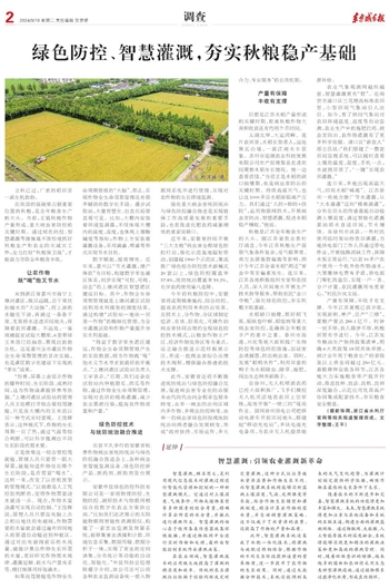 在我国的饭碗里占据重要位置的秋粮,是全年粮食生产的大头。当前,正值秋粮作物产量形成、重大病虫害防控的关键时期。通过绿色防控、智慧灌溉等措施毫不放松地抓好秋粮生产和农业防灾减灾工作,全力打好“秋粮保卫战”,才能奋力夺取全年粮食丰收。
