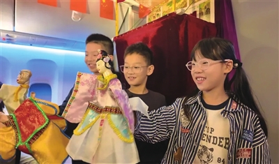 在中兴镇汲浜小学的扁担戏传承基地里,有一群擅长表演扁担戏的孩子。坐上高脚凳,手戴木偶套,脚踩锣钹……12岁的学生徐诗语,在一块红色绒布帷幔前,将一出《齐天大圣来崇明》的故事演绎得满场生辉。
