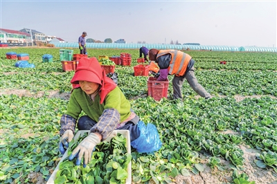 日前,位于奉贤区的上海惠群蔬菜种植专业合作社呈现出一片繁忙的景象。为确保蔬菜供应量,合作社组织人手进行蔬菜采收,节后复工有条不紊。