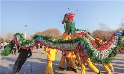 这里的正月更多地保留了一些古代中原的传统习俗。坐在屋中,时时可闻喧天的锣鼓声。出门走上一走,更是随处都能见到一片大空地上,团团围着厚厚的人群,人群内传出悠扬的胡琴声,里面肯定是有人在表演节目:或是传统戏曲,或是一些传统表演项目。