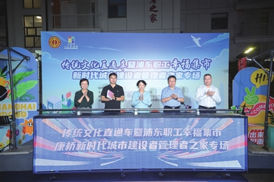 该新型居住社区的群团力量以“党建带群建,群建促党建”为工作思路,充分发挥工会、共青团、妇联力量优势,设立“康工社”职工服务站、青年驿站等,将党建引领、群团组织、社区治理与公寓运营管理相结合,丰富入住者业余生活,做到资源下沉、力量下沉、重心下沉,着力打造城市建设者的“心港湾”。比如通过市区工会联动,搭建平台的方式,举行传统文化直通车暨浦东职工“幸福集市” 新时代城市建设者管理者之家专场活动。以弘扬传统文化为主,联合职工喜闻乐见的公益乐学、读书创作等服务项目,为广大建设者们带来集传统文化、优质商户、工会服务和体验于一体的综合性集市活动,感受传统文化和“幸福集市”魅力。