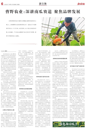 曹野农业:深耕南瓜赛道 聚焦品牌发展
