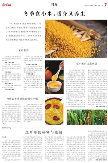 冬季室外寒冷干燥,室内燥热,很多人出现胃痛、四肢发冷等脾胃虚寒的症状,小米不仅营养全面,还可以补虚损,开肠胃,特别适合脾胃虚弱的人食用。此外小米还有助于和胃安眠、滋阴养血,尤其适合冬季怕冷的虚寒体质者,其富含的B族维生素还能帮助缓解消化不良,预防冬季口角生疮。