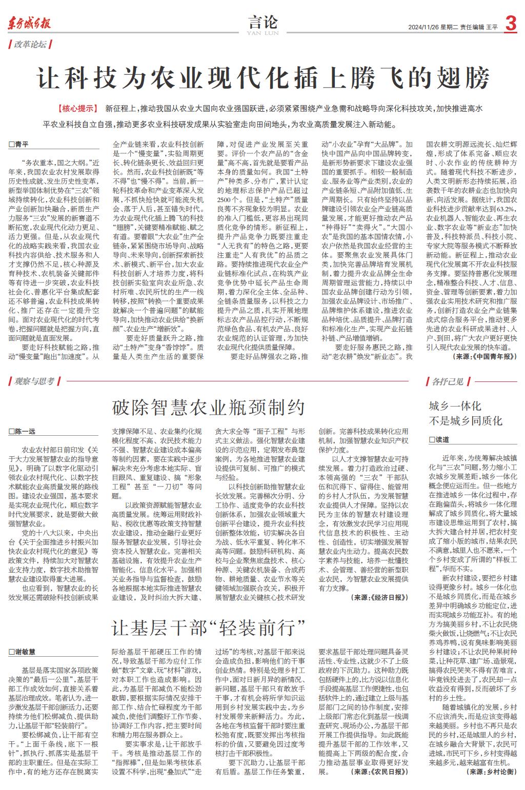 让科技为农业现代化插上腾飞的翅膀
