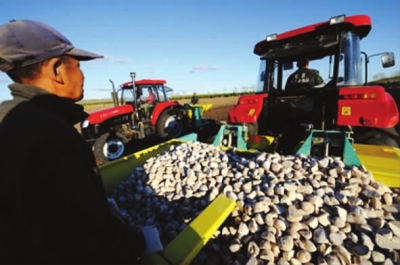 仁发农机合作社会计于守信介绍,除种玉米外,2011年合作社还种了2000亩马铃薯种薯,代耕土地28万亩,当年盈余1342万元,比2010年增加了100倍。