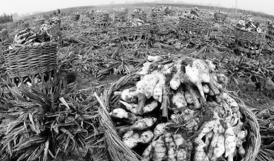 河北省唐山市洗姜厂负责人李先生说:“那时一年产量在十万斤左右,现在一年产量到了四百万斤左右,产大于销了。咱们这要是一涨的话就上别的地方去收去了。今年百分之九十这样的都赔钱。”