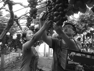 心心葡萄园,美景美味皆醉人。许多游客自己饱了口福,还不忘将美味带回家让亲戚朋友共享,剪下串串优质葡萄,由园方免费提供包装盒进行包装,虽说每斤30元价格不低,但个个都说“值!”