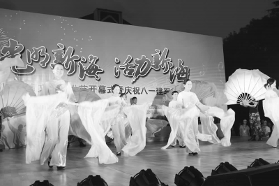 近日,崇明县新海镇人民政府举办的“光明新海、活力新海”艺术节开幕式,活动现场流光溢彩、欢歌阵阵,吸引了社区无数居民。图为演员们在表演舞蹈《欢聚一堂》。