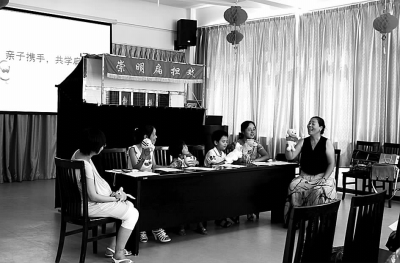 活动前期,来自团委、妇联的青年志愿者,利用业余时间写方案,找故事、编故事,模仿电视中动物的一些动作和声音。镇社区文化活动中心的朱聪还专门从网上采购了一批孩子们喜欢的动物造型的布袋木偶,以供教学使用。活动中,这些志愿者以极大的热情,为学生和家长进行教学表演,先后为20多对学生和家长表演了儿童剧本的扁担戏:《环保小品剧:消灭白色污染》和《做个懂礼貌的孩子》,活泼的小猴子、可爱的小猪,风趣幽默的卡通形象,富有孩子气的语音语气语调,赢得了场下所有亲子家庭的阵阵掌声,也激发了家长与小朋友们参与学习扁担戏的热情,纷纷上台,一试身手。在木偶教学中,孩子和家长分别手戴形态各异的小木偶,跟着台上的老师从学点头、学举手、学拍手开始,一招一式,通俗易懂、直观易学。镇社区文化活动中心不仅请来了扁担戏传人朱雪山老师,还专门邀请了上海市级群众文艺表演指导老师杨黎萍来辅导,亲子家庭在杨老师的指导下很快进入了角色。一位母亲高兴地说:“这样的活动非常有意义,不仅给她提供了与孩子交流的平台,还让孩子在娱乐的过程中学习了我们的传统文化。”