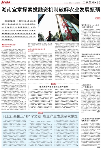 湖南宜章探索投融资机制破解农业发展瓶颈