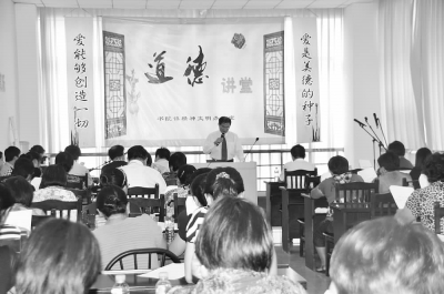 日前,浦东新区书院镇文化中心“公民道德讲堂”开课,第一课选题为“爱”,一段“身边人的事例”演讲,使讲堂内的所有听众为之动容。据悉,“公民道德讲堂”采用“一月一堂”形式,从“孝”、“礼”、“善”、“诚”等课题传播中华民族的传统道德,讲堂将陆续办进村委、居委和机关学校。