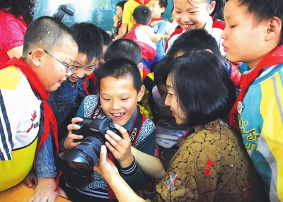 一群从未接触过相机的民工子弟端起了高级专业相机,对着四周喀嚓喀嚓频按快门,当现场画面一个个瞬间还原于屏幕时,孩子们兴奋不已(见图)。日前,奉贤区南桥镇摄影沙龙党员志愿者前往奉贤区敬贤民办小学,用自己的相机,为当地外来农民工子弟上了一堂摄影启蒙课,引发了孩子们的极大兴趣。据悉,这项旨在陶冶情操、为外来农民工子弟培养更多理想追求的志愿服务活动今后将逐步展开。