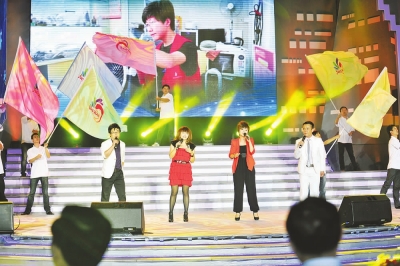当舞台屏幕上出现菊园人熟悉的“蓝色小三轮车”时,大家不由得喊出了老党员“汤阿姨”的名字。今年74岁的汤玉琴是菊园新区永胜村的老党员,近年来,在她的热心志愿服务之下,嘉定区图书馆在她家客堂间设了一个“百姓书社”服务点。作为书社管理员,汤阿姨不仅为本土村民和新菊园人提供了阅读方便,而且还把书社变成了一个百姓沟通交流的场所,“汤家小三轮”也在菊园这块热土上留下了无数温暖的印记,为促进社会和谐发挥着积极作用。在晚会节目中,情景剧《一家亲》就是以汤阿姨为原型创编的,通过舞台再现汤阿姨“百姓书社”的点滴故事,倡导更多百姓学习汤阿姨的“一家亲”精神。