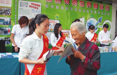 10月9日是一年一度的世界邮政日,今年的主题是“情系万家,信达天下”。当天上午,上海邮政奉贤公司在该区解放路、南桥路口举行“世界邮政日纪念活动”,现场挂起宣传横幅,奉贤邮政工作人员忙个不停地向过路群众和社区居民发放宣传资料,介绍邮政传统服务和新型服务,旨在进一步提高服务质量,展示“奉贤邮政人”的风采。