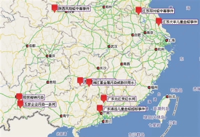 作为国土资源大调查重要成果及全国土壤污染状况调查专项,全国多目标区域地球化学调查项目也已经发现局部地区土壤污染严重。如长江中下游某些区域普遍存在镉、汞、铅、砷等异常。城市及其周边普遍存在汞铅异常,部分城市明显存在放射性异常。湖泊有害元素富集,土壤酸化严重。研究证实,镉、汞等重金属元素与人类污染存在密切关系。重金属元素在土壤表层明显富集并与人口密集区、工矿业区存在密切相关性。与1994—1995年采样相比,土壤重金属污染分布面积显著扩大并向东部人口密集区扩散。