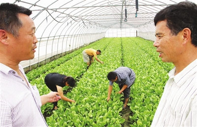 在脱了“衣”的露地菜棚里撒下了水稻种子,让水枪整得极其平整的地表上则裹着一层薄薄的水泥浆层,上面星星点点镶满了冒芽的种子,发芽率达到了90%以上,这就是上海元德蔬果专业合作社水旱轮作的杰作。据该社理事长丁惠康称,进行蔬菜水稻轮作,不仅能种出好水稻,更主要的是能大大降低设施菜田的盐渍化程度,消除蔬菜根瘤菌,提高蔬菜种植水平。图为丁惠康(右)正在菜园进行管理。 相关报道:“元德”合作社打造水旱轮作模式示范基地 〉〉〉详见A2版