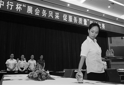 日前,2013年金山区机管局首届文化艺术节——中行杯“展会务风采 促服务质量”技能比赛在区会议中心举行。参赛的6支来自机关和企事业单位代表队的30多名选手,分别在会议铺台、茶歇台铺台和签字仪式服务等项目中展开技能比武,选手们展示出的大方仪容仪表和微笑敬语赢得了评委的好评。通讯员 庄毅 摄/文