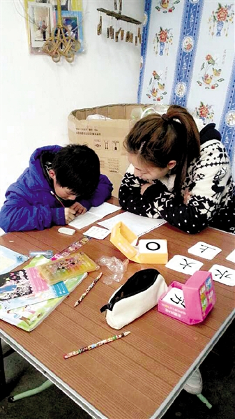 好在去年年初两位大学生村官——汤怡菁、龚裕婷的到来,让她卸下了压在心中的大石。她们每周都会抽出两个晚上到聂奶奶家为两个孩子义务补课,在怎样提高孩子学习上,小汤和小龚真没少操心,尤其是对待年龄偏小的小志,由于他生性内向害羞,学习能力又偏弱,长期学习成绩不理想导致小志有些自卑,软弱的性格在学校常会受人欺负。为了让基础薄弱的小志跟上学习进度,提高他的自信心,小龚特地拿来了自己小时候用的录音机装上拼音磁带让小志经常听读,小汤则买来了有趣新颖的字母表挂在小志床头好让他早起或睡觉都能一眼看到,力求在潜移默化中加深他的记忆。