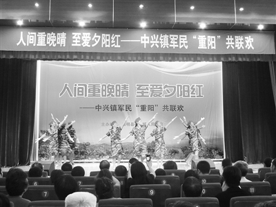 本报讯 为庆祝重阳佳节,弘扬中华民族敬老爱老的传统美德,10月10日上午,一场以军民“重阳”共联欢为主题的大型庆祝活动在崇明县中兴镇拉开帷幕。来自全镇社区老年人代表、“港澳台侨”的老年眷属和驻地部队官兵代表近300人参加活动。
