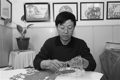 金山区亭林镇茉利琳时装有限公司党支部书记吴国盛从15岁开始学习剪纸艺术,至今已有30多个春秋,被当地群众称为剪纸“达人”。近年来,吴国盛利用业余时间,用剪纸这一民间文化艺术宣传廉政文化。他的作品《学习十八大精神》、《高风亮节》、《清风青竹》、《出淤泥而不染》等曾参加区职工廉政文化建设书画比赛、“两新”组织党建书画比赛,并获得好成绩。图为吴国盛正在专心剪纸。 通讯员 金辉忠 徐建明 摄/文