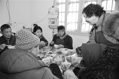 听说93岁的金奶奶病了不能来,顾阿姨便准备了一大碗腊八粥,送到了老人的枕边,一边喂老人一边和她聊天。顾阿姨说,只要老百姓高兴、爱吃,天天都可以是腊八节。村里的志愿者小吴说这里喝的不仅是一碗粥,而是一份邻里情。