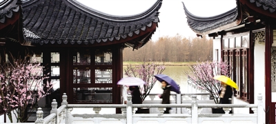 雨中赏梅游人兴致不减