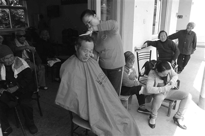 “你们竟然不嫌我老太婆,给我剪脚指甲,真是好得来!”90来岁的老奶奶握住学员的手感激道,这生动一幕发生在敬老院。金山区亭林镇阳光心园为了培养精神残疾学员的爱心,日前由老师带领部分学员来到亭林敬老院,开展为老人理发、剪手(脚)指甲等爱心服务。临走时,师生们又将地上的发丝等垃圾清理得干干净净。通讯员 邵其 摄/文