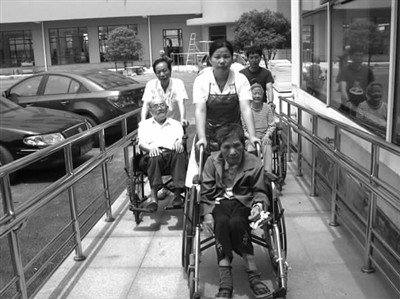 日前,青浦区盈浦街道盈中敬老院老人高兴而平安地迁入新居。新建敬老院占地1万多平方米,拥有住房53间,上下电梯,楼与楼之间有走廊衔接,方便老人出入。居室内空调、全套家具和家电一应俱全,卫生间、淋浴房、紧急呼叫系统、电话宽带、有线电视等配套设施到位。院内绿树葱郁,风景秀丽,老人居住的房间明亮整洁,从老年人身体状况出发,院内还配有绿色通道、无障碍设施。图为行动不便的老人在敬老院工作人员的帮助下通过无障碍设施进入住所。