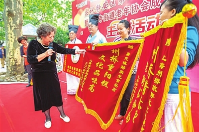 今年国庆恰逢重阳,日前,静安区静安寺街道举行“立家训、树家风、讲家教”重阳敬老活动。身着汉服的嘉定州桥重阳糕传人向柏万青志愿者工作室赠送了一批文化色彩浓厚的重阳糕,并把重阳糕当场分送给200位老年志愿者。