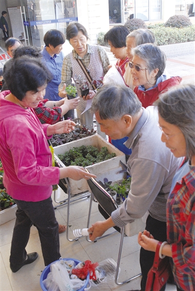 每到月末最后一个周六上午的“老时间”、“老地方”,居民们就会用废电池、废节能灯等有害的生活废品来换回自己喜爱的花卉和绿色植物。这些花卉和绿色植物不仅美化了家庭、美化了楼道,也美化了姐妹们的心灵。