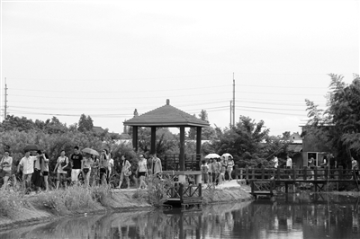 “来到这里除了采摘购买葡萄外,还能给游客留下点什么?农业旅游就是很好的方式。”记者看到,在这片占地200亩的基地,不仅有夏黑、喜乐、巨峰、醉金香、巨玫瑰、阳光玫瑰、京亚、黄密等多个葡萄品种。园内还种植有桃林,有软糯香甜的湖锦蜜露桃,汁多味美的蟠桃,香脆爽口的锦绣黄桃。经过几年的规划建设,园艺场俨然成为一个精致的休闲乐园:小桥流水,桃花岛屿,钓鱼小木台,童趣秋千,游客走累了可以在小亭子里休息,或者在竹林里乘凉小坐。园内散养着母鸡、野鸭、白鹅。饲养着兔子、鸽子、鳄龟、大雁等,可供游客垂钓、喂养、选购。每到葡萄销售旺季,许多游客会带着家人来到这里采摘葡萄,再吃上一顿可口的农家饭菜。