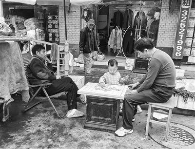 两位男子在街头对弈,没想到中途杀出个“熊孩子”一把毁了棋局,自说自话地玩了起来,令对弈者煞是无奈。日前,记者在长宁区福泉路上拍到这有趣的一幕。